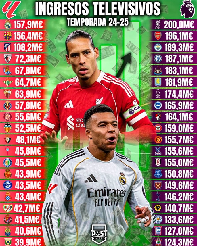 LaLiga española vuelve a retratarse ante la Premier y sigue perdiendo peso en Europa. El modelo de Tebas (enfrentamiento con el Real Madrid, manga ancha para el Barça y CVC para el resto) no funciona. Barney pega un repaso a ambas competiciones:
