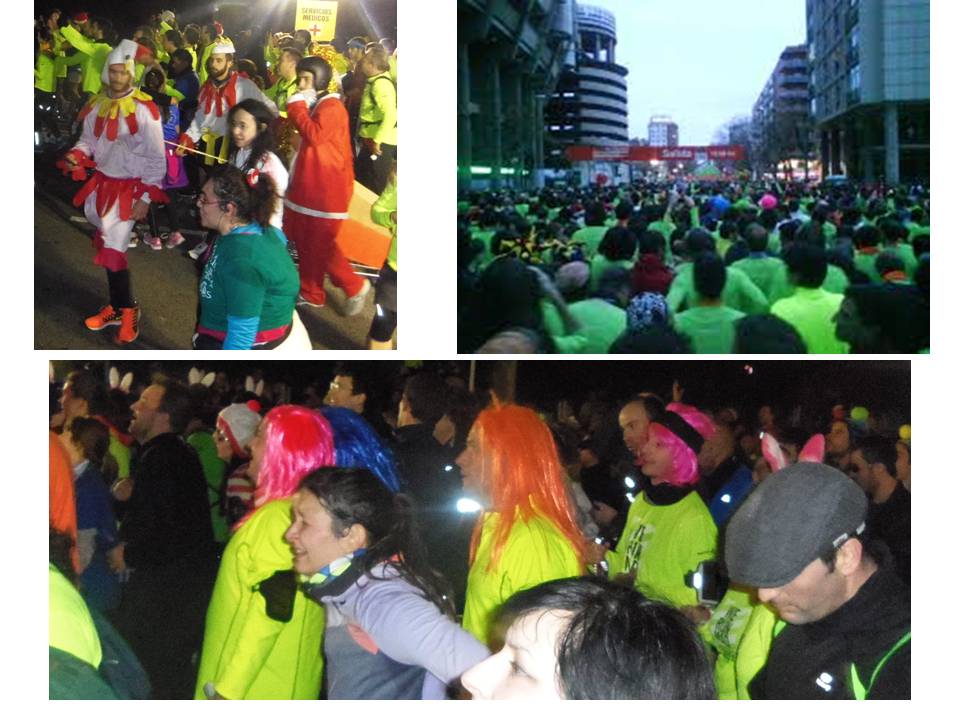 BernabéuTodavía no entiendo muy bien cómo, el pasado día 31 de diciembre me encontraba a media tarde en pantalón corto junto a la puerta 30 del Bernabéu dispuesto a correr 10 kilómetros para despedir el año 2014. Me convencieron sobre todo mis hijos, que querían participar, y que me han obligado a retirarme algunos ratos de los últimos tres meses del sofá para entrenar la carrera y no morir en el intento. También me insistieron algunos amiguetes, Lester a la cabeza, porque como los seguidores de este blog saben, yo me retiré de la práctica del deporte de «no élite» allá por el final de los 80, principios de los 90. Pero este año me han convencido, «que es muy divertido», «que el ambiente es brutal», «que luego la cena te sienta mucho mejor», y el argumento definitivo, «que al acabar nos tomamos unas cañas en Vallecas». La presión era tal que no pude resistirme. «Venga, va, me apunto, pero por mis hijos, no por las cañas, ¿eh?».