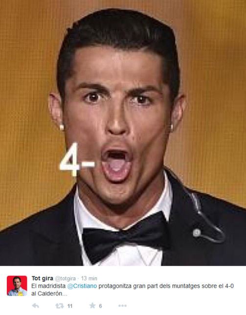Lo primero, aguantar una semanita a nuestros amigos del Atleti con sus bromas y sus chanzas, «¿CR7 cumplía hoy su tercer partido de sanción?», «¿La BBC estaba de Bodas, Bautizos y Comuniones?», «Bale no es tan chupón, hoy no ha tocado la bola», o que nos devuelvan el vacile de «Se busca rival digno para derby decente», aquella famosa pancarta heredera de los 14 años de vacío de los rojiblancos. Más que «de vacío», 14 años «en blanco». Sonreíd, reídles las gracias, apretad los dientes, ya llegará nuestro momento. A mí me va a tocar aguantar más, por todo lo que me he metido con Torres, con el Cholo Simeone o con Raúl García.