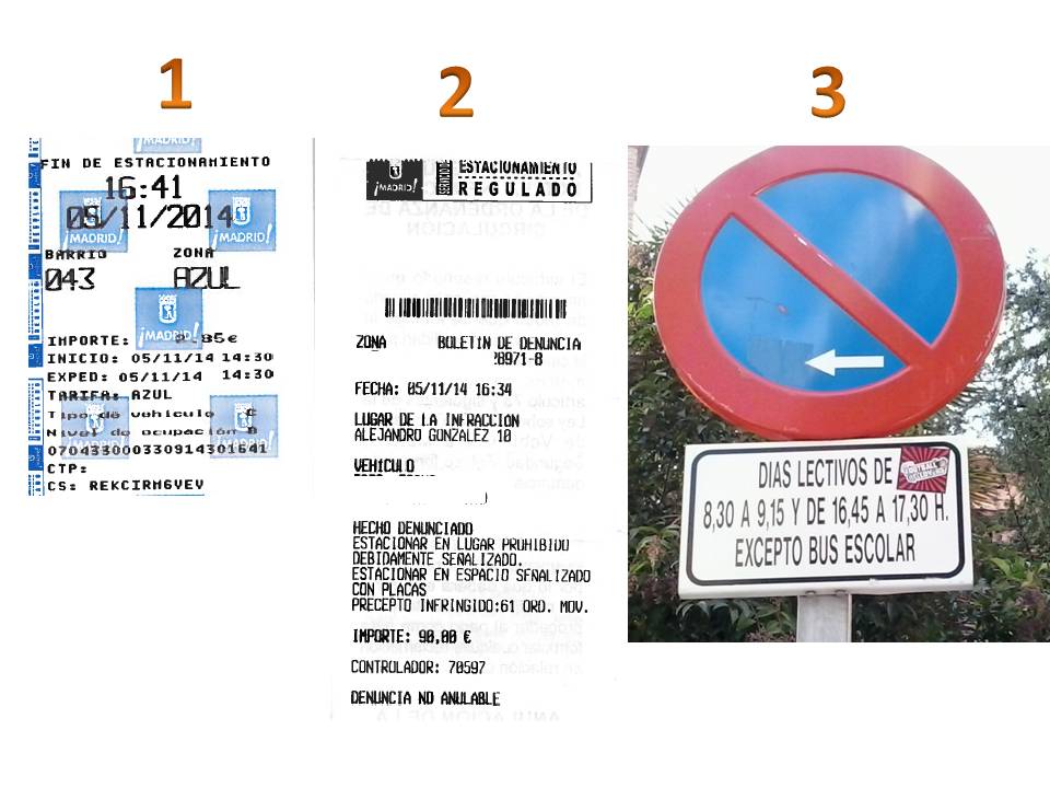 2. Notificación de la denuncia del controlador ¡a las 16.34 horas! Por estacionar en lugar prohibido debidamente señalizado.