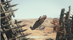 D5Todo funcionaba, pero el momento que me enganchó definitivamente fue el despegue del Halcón Milenario y su vuelo a ras sobre la arena del desierto y por el interior del destructor imperial. Un arranque brutal, magnífico para engancharnos. Me llevé al cine a mis sobrinos, de 7 y 15 años, y les miraba en la oscuridad de la sala. Su mirada alucinada, su sonrisa, sus ojos expectantes,… Sentí envidia por no ser ya ese niño inocente que se acerca con una mirada limpia a las películas, pero por momentos estuve cerca de serlo.