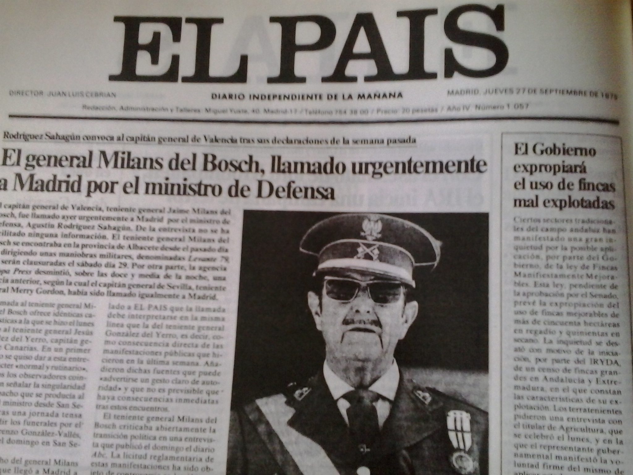 Y unos meses antes, otro de los cabecillas del 23-F, el general Milans del Bosch, ocupó la portada del periódico tras ser citado por el ministro de Defensa, Agustín Rodríguez Sahagún, tras unas declaraciones en las que «criticaba abiertamente la transición política». Su naturaleza golpista y opuesta a la democracia les ha acompañado el resto de sus días.