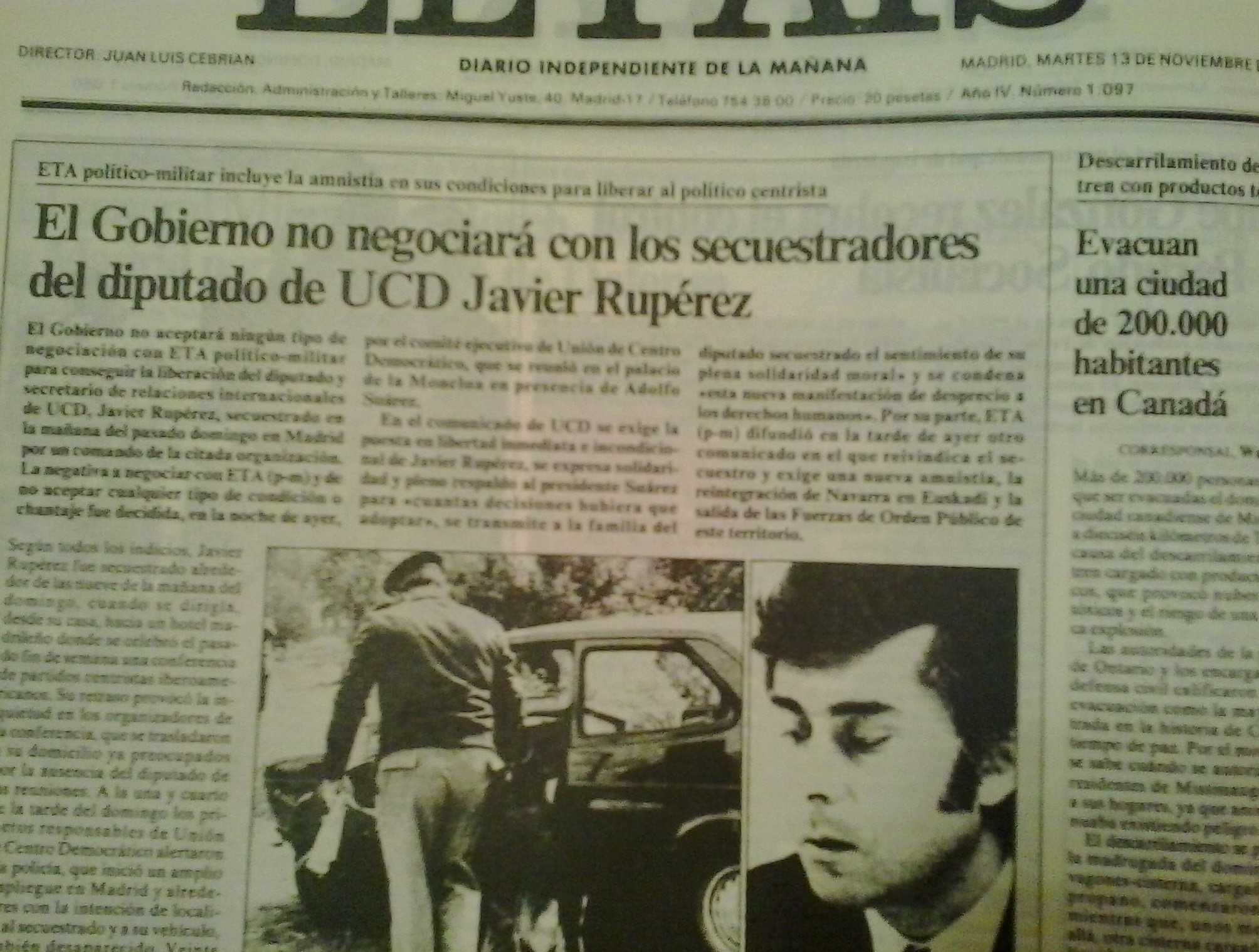 Pero para el señor Otegi, el represor es el Estado español, ese Estado que le juzgó y no condenó por ejemplo, por el secuestro de Javier Rupérez, quizás porque en este Estado represor se respetan las garantías procesales que no amparan al que sufre un tiro en la nuca y no se reunieron pruebas suficientes.