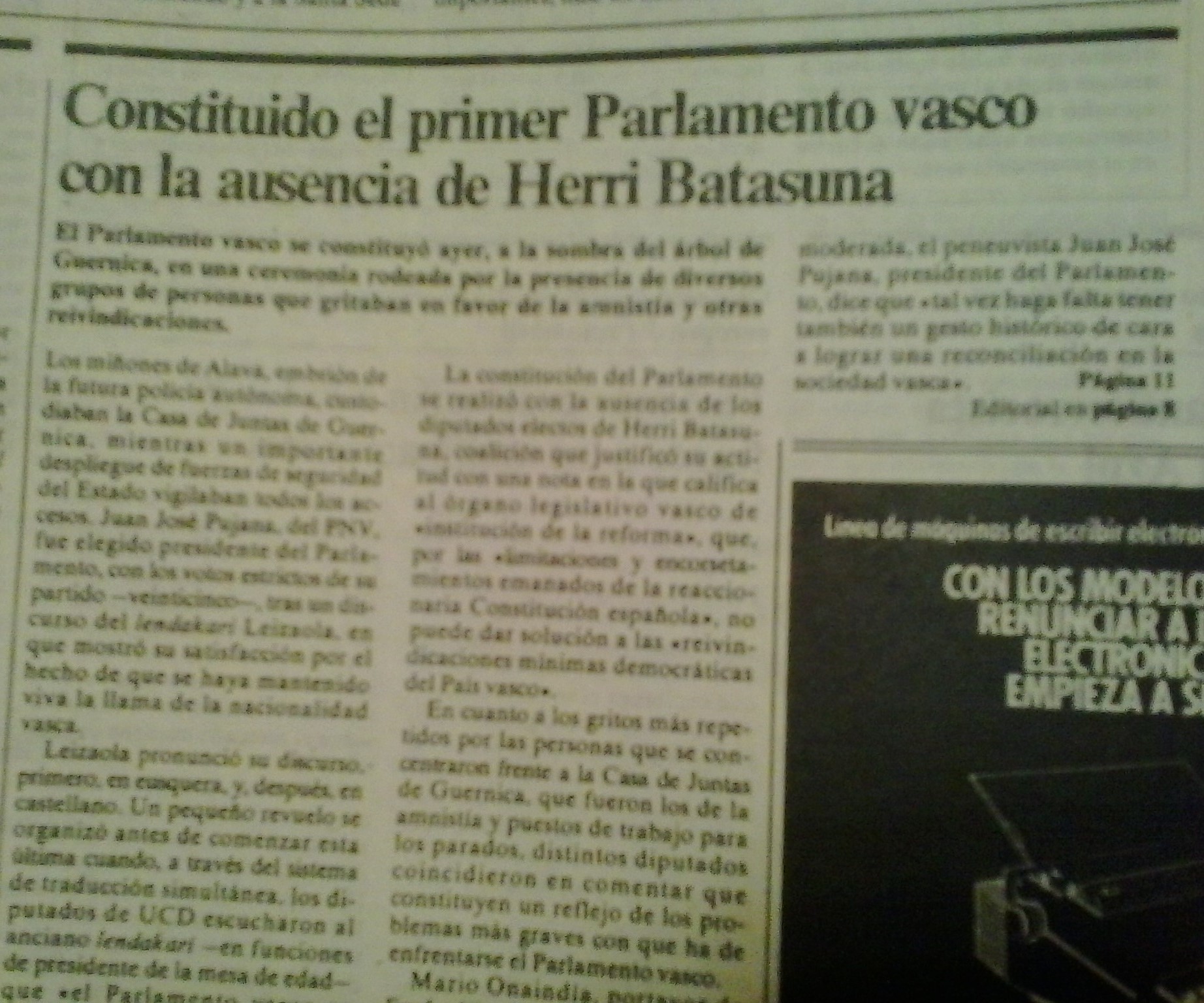 Confesó su participación en ETA político-militar como quien toma cañas o juega al fútbol con los amigos, son cosas que pasan, te unes a ellos y no lo piensas más. Mintió como un bellaco a lo largo de la entrevista, como cuando negó haber participado en un secuestro. Con esta frase lanzó otra nueva acusación al Estado español, algo así como que le metieron en la cárcel por sus ideas políticas, cuando durante el juicio por el secuestro de Luis Abaitua, director de Michelin en Vitoria, en 1979, quedó acreditada su participación. O sea que los seis años de cárcel debieron ser parte de la tortura sistemática a la que fue sometido por sus ideales «políticos».