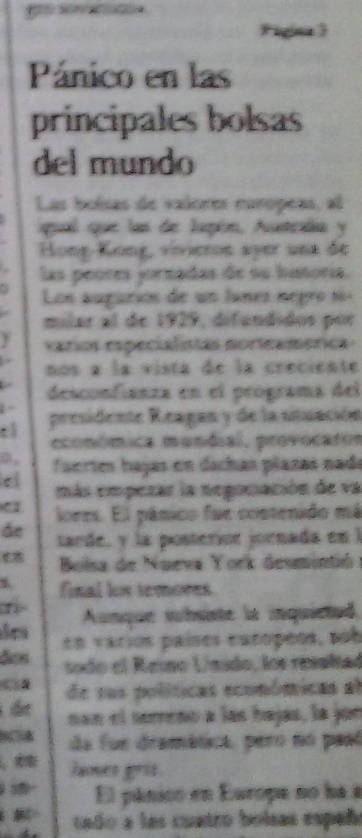 O estas otras, que hablan de la manipulación del precio del petróleo (24 de febrero de 1983), del pánico en las bolsas (29 de septiembre de 1981, o cualquier día elegido al azar durante ciclos bajistas) o del tráfico de armas, actividad en la que nuestro país siempre ha sido muy activo, sin importar demasiado a quién se le vendían: