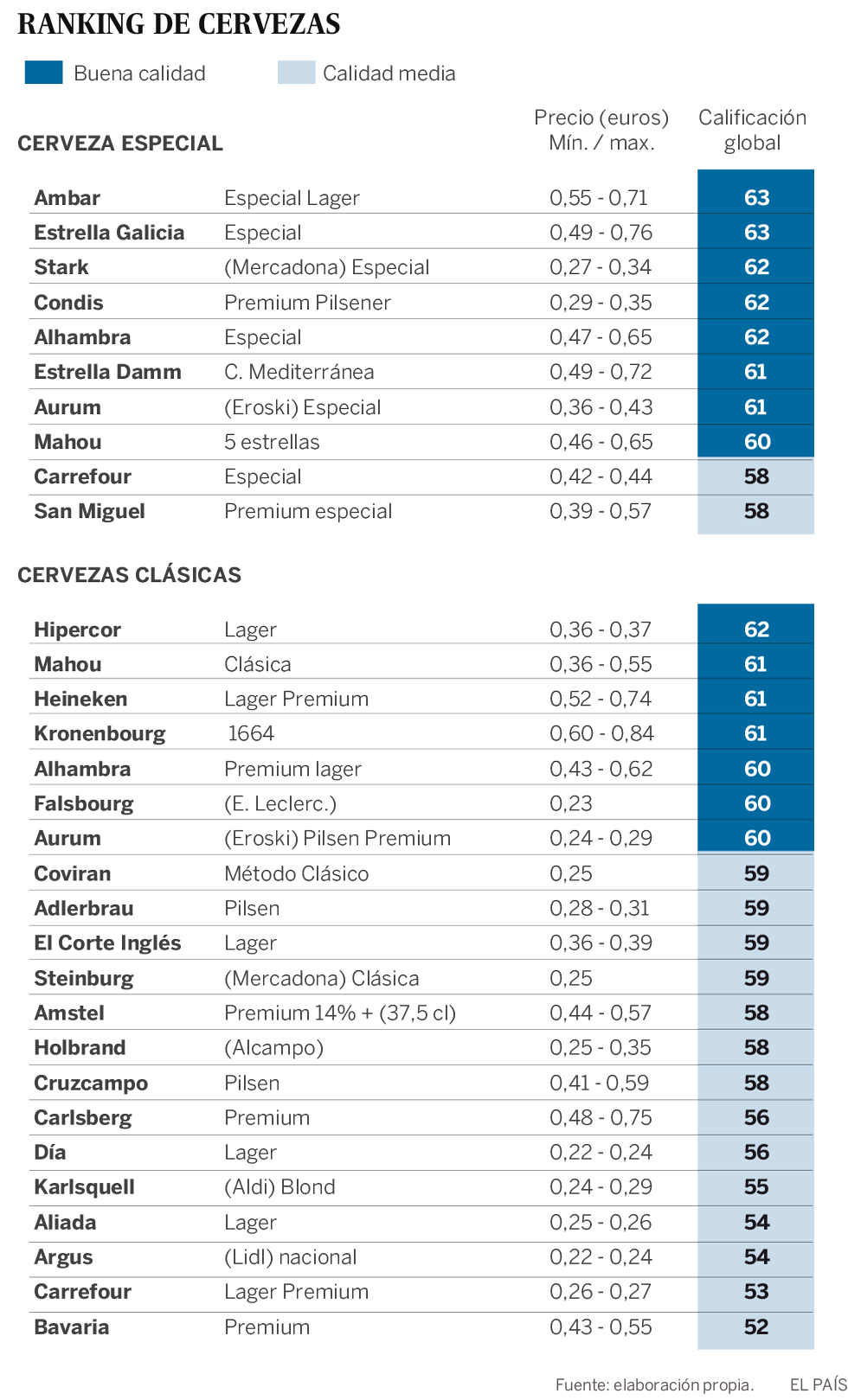 Y no voy a cometer la osadía de atacar las marcas blancas justo el mismo día en que un análisis de la OCU ha determinado que las mejores cervezas son Ámbar, Estrella Galicia y ¡Hipercor Lager! Vamos, la que todos pedimos habitualmente.