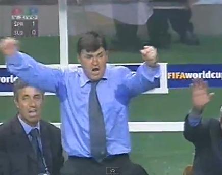 Y los goles llegaron. A los 5 minutos de iniciada la segunda parte, parece que Rubén Baraja marcó de cabeza. He visto un millón de veces esta jugada y no hay motivo alguno para que se anule el gol. Si hay una falta es el agarrón del defensa coreano a Iván Helguera, nada más. Y nada menos, el infame Al Ghandour lo anuló sin contemplaciones. Empezamos a ponernos un poco nerviosos, «a ver si lo de Italia y los errores no fue casual…»