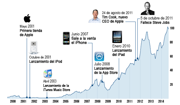 La segunda conferencia era de Apple y en ella contaron un hecho que desconocía por completo, pero que era todo lo contrario a la diversificación de riesgo. Hace unos quince años Apple vendía 212 productos diferentes. La cotización bursátil estaba plana y Steve Jobs y los suyos decidieron dar un giro completo. Descartaron la mayoría de los productos y se concentraron en apenas cinco. Eso sí, tratarían de ser los mejores cinco productos del mercado, cada uno en lo suyo. La gráfica de la evolución de la compañía es brutal desde entonces. Y la historia de éxito continúa.