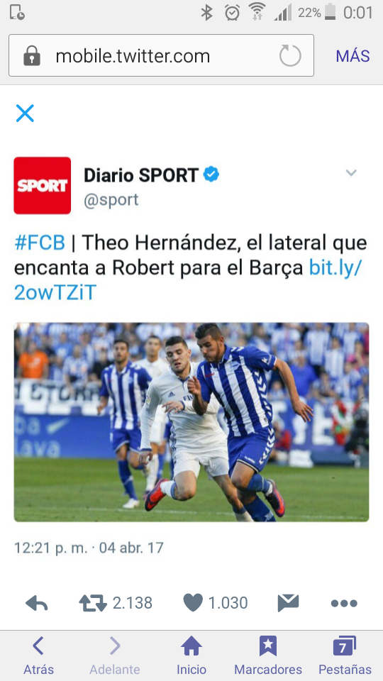 Esta misma semana han montado el lío porque según parece el Madrid quiere fichar al lateral Theo Hernández, actualmente en el Alavés. Por cierto, dejo aquí dos instantáneas de periodismo del bueno, bueno, del imparcial que se practica en el nordeste de la península, del que distingue entre buenos y malos por sus afinidades: