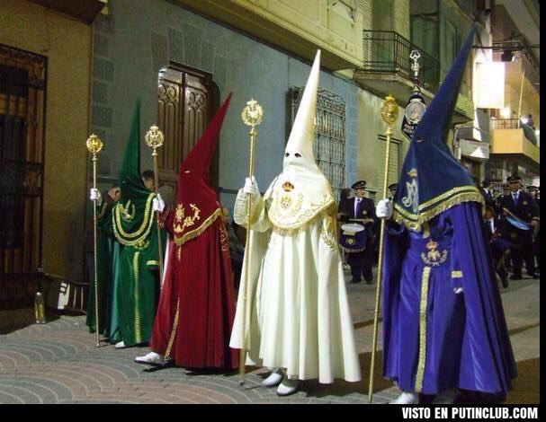 En fin, que no soy muy capillitas semanasantero, lo reconozco. En una de las últimas procesiones en la que estuve, muchos años ha, se juntaron dos pasos en una plaza, cada uno por una esquina, y dije a mis compañeros, fervientes seguidores de la cofradía del Santo Sepulcro de la sangre blanqueada con Ariel: