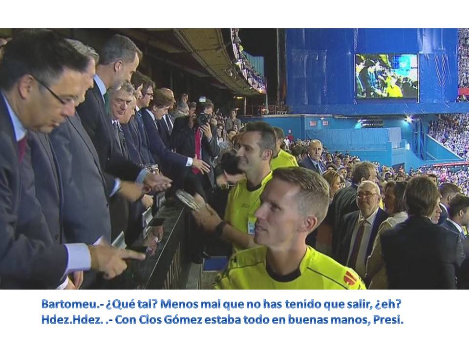 - ¿Quién era el cuarto árbitro de la final de Copa de la semana pasada (F.C. Barcelona-Alavés)? Pues será otra casualidad, pero el infame Hernández Hernández, el que pitó los dos vergonzosos penaltis a favor del Barça en la última jornada de liga frente al Éibar.