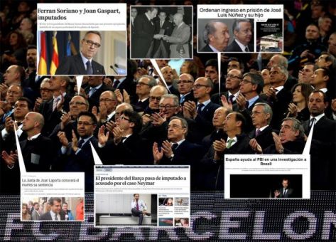 - Fútbol Club Barcelona: Josep María Bartomeu (estafa, y delitos fiscales y societarios en el caso Neymar), Sandro Rosell (blanqueo de capitales, corrupción entre particulares, delitos fiscales y societarios), Joan Laporta (por el agujero sin justificar que dejó en las arcas del club), Joan Gaspart (por su implicación en la quiebra de Spanair), y Josep Lluís Núñez (soborno a funcionarios de Hacienda y falsedad documental).