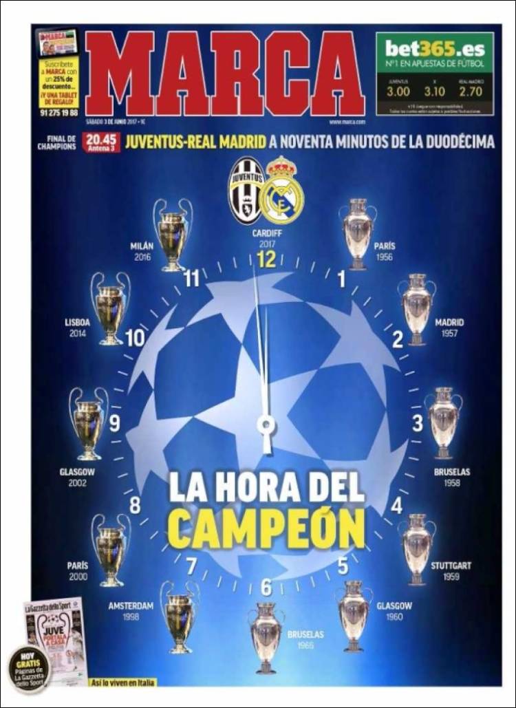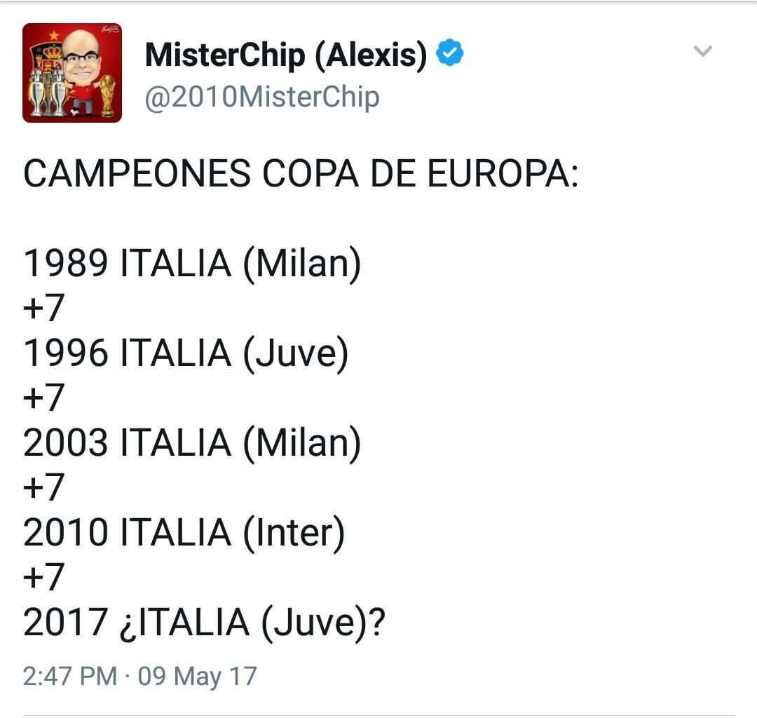 Y se encendieron todas mis alarmas, las que saltan cuando alguien dice que vamos a ganar, que vamos a meter tres o cuatro al rival, que vamos a arrasarlos, que «va a ser un chorreo», como el bocachanclas de Boluda. No falla. Y por diversas razones, creo que NO vamos a ganar la final contra la Juve esta noche.