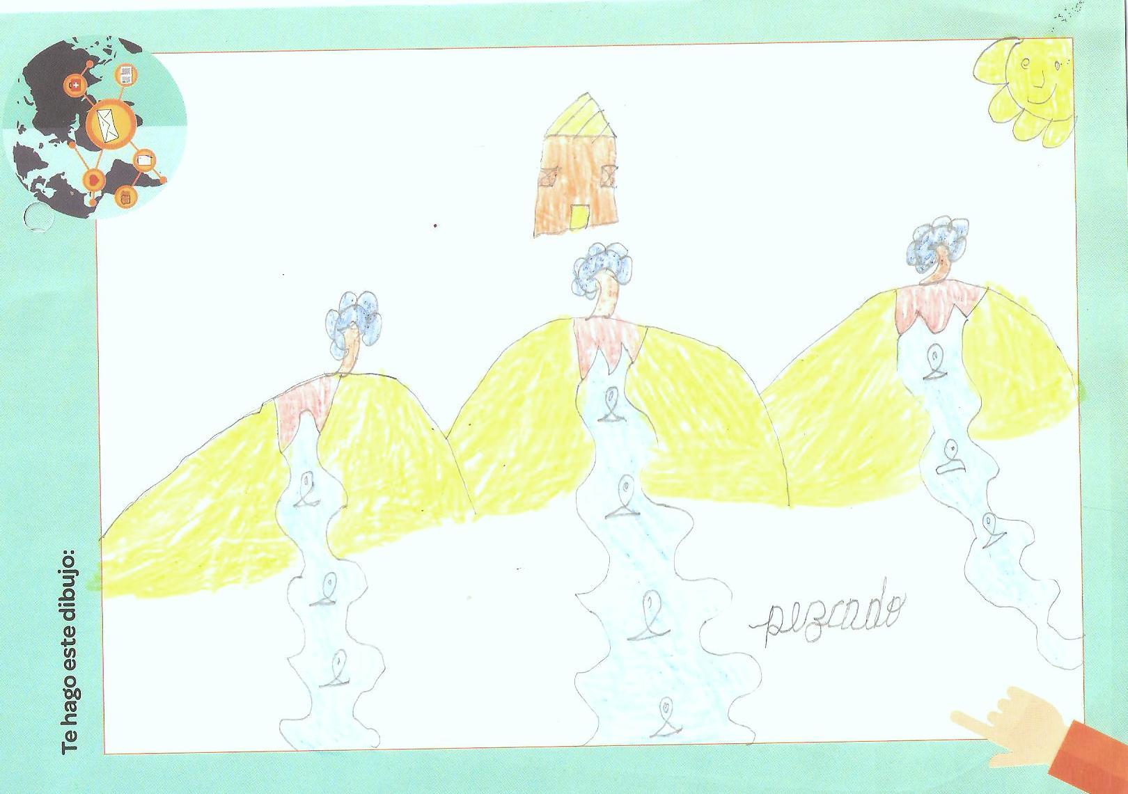 Lo que me gustó de Ayuda en Acción, y me sigue gustando, es que te facilita poner rostro a tu ayuda por medio del apadrinamiento de niños en cada comunidad. Por aquello de la protección de la privacidad no voy a poner sus fotos reales, pero todos los dibujos que acompañan a este texto han sido realizados por esos apadrinados que he tenido estos años en Ecuador (Cayambe, Cusubamba, Pucayacu-Guasaganda, Chota-Mira, Cotacachi,…). Sus nombres suenan exóticos, lejanos y cercanos a la vez: Rosa Marlene, Melany Estefanía, Widinson Lizandro, Ángel Flavio, María Julia,… y uno de ellos, verídico, que se llama Luis Stalin.