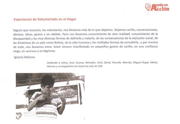 Los seguidores habituales del blog tuvieron la oportunidad de leer hace un año la experiencia como voluntaria en terreno de mi hija Rachel en la India y en Uganda. Por supuesto tengo que manifestar el orgullo que sentí y siento, y ha sido su empuje, sus ganas de ayudar, su extraordinaria motivación libre de prejuicios y miedos la que nos ha movido este año a seguir sus pasos. Toda la familia. Parece mentira que tengan que ser nuestros hijos los que nos saquen del área de confort de la que precisamente no queremos que ellos salgan. Así que preparaos, lectores, que este verano leeréis las andanzas de Lester y familia en el Hogar Teresa de los Andes, en Santa Cruz de la Sierra, Bolivia.