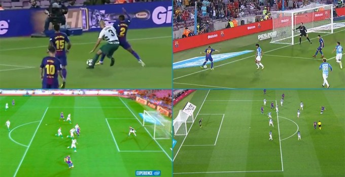 Jornada 3: F.C. Barcelona – Español. El 1-0 viene tras un fuera de juego claro de Messi.