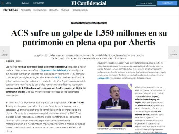 ¿Qué te parecen algunas de las nuevas normas contables, como las NIIF 9, 15 y 16? ¿No se está desvirtuando por completo la contabilidad con estos criterios tan volubles e incomprensibles? Incluyo aquí referencias a dos noticias sobre la modificación de los resultados de Telefónica (link) y ACS (link), no porque sus números vayan mal, sino porque han cambiado los criterios contables.