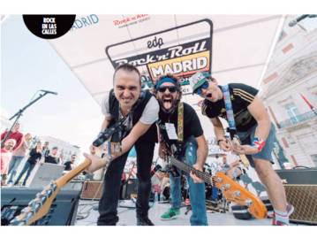 A ese ambiente especial del Mapoma contribuye la organización internacional EDP Rock ‘n’ Roll Marathon, que desde hace cinco años se ha asociado con el Maratón de Madrid y lo ha incorporado al selecto grupo internacional de maratones «rockeros», como Las Vegas, Chicago, Dublín, Liverpool, Montreal, Guangzhou o una veintena más. Tú estás ahí sobre el asfalto, dándolo todo, y te encuentras cada dos o tres kilómetros a una banda de música haciendo lo mismo sobre un pequeño escenario improvisado. Algunas bandas te animan un montón, los cantantes lanzan frases de ánimo a los corredores en mitad de sus canciones, la batería y la guitarra eléctrica te ponen la carne de gallina, y otros en cambio, con su aspecto de fumetas recién levantados, parecen en peores condiciones que los que llevamos treinta kilómetros a las espaldas.