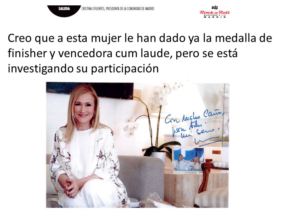 - En 2013 y 2014, acompañé durante 24 y 26 kilómetros a amigos debutantes, para animarles en los peores momentos, para tranquilizarles cuando querían ir muy rápido, «¡que queda mucho, chaval!», o simplemente para acercarles el agua. Esos días que voy sin dorsal me incorporo hacia el kilómetro 15, cuando la carrera se ha despejado, para no molestar a nadie y ayudar a mi amigo, y nunca entro en meta. Además (aviso para gorrones) realizo la «machada» de correr sin coger agua en los avituallamientos, puesto que no he pagado por la carrera. Lo digo por esos runners gorrones que a veces vemos en algunas populares y que además pretenden llevarse una bolsa o incluso medalla en meta.