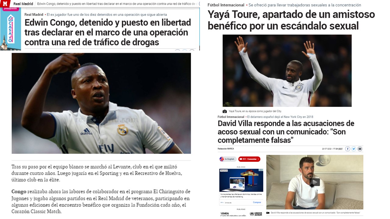 Resulta sorprendente el hallazgo de Edwin Congo con la camiseta del Real Madrid, sobre todo porque a lo largo de su carrera no jugó ni un solo minuto con la misma. Jugó en el Valladolid, Vitoria de Guimaraes, Toulouse, Levante, Sporting de Gijón y Recreativo de Huelva, pero buscaron y rebuscaron hasta encontrar una del colombiano en el partido benéfico Corazón Classic Match. Sin embargo, uno lee los artículos sobre Yayá Toure, Villa y Gabi en el mismo medio supuestamente madridista y no hay una sola mención a su pasado culé o atlético. No es casual, nada es casual.