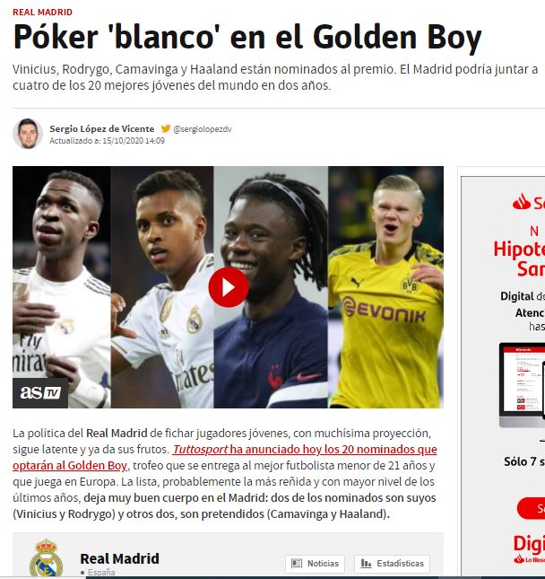 Piqué como un idiota, ¿qué es eso de que el Madrid tiene a cuatro jugadores menores de veinte años entre los mejores jóvenes del mundo? «Acabo de enterarme de que hemos fichado a Haaland y Camavinga, no sabía nada». Pero obviamente no era así, era un clickbait (cebo para clicks) de manual y piqué cual gañán ávido de información de su equipo. Los medios saben que los aficionados están ansiosos por escuchar o leer noticias acerca de fichajes de su equipo favorito, y así se pasan meses calentando con rumores e invenciones sobre supuestos intereses que nunca se concretan. No sé cuántas veces ha «fichado» el Madrid (o tiene «principios de acuerdo», o «a falta de unos flecos») en los últimos años a los mencionados Haaland y Camavinga, pero también a Mbappé, Van de Beek, Erikssen, Pogba, Upamecano o Bruno Fernandes. Casi tantas entre todos como el Barça por Lautaro o Neymar, pero esa es otra historia de vendedores de humo de la que no venía a hablar hoy.