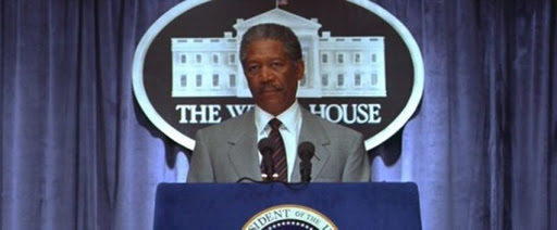 Gran película de Stanley Kubrick, enorme Peter Sellers interpretando tres papeles completamente diferentes. En mi imaginario el presidente norteamericano debería ser un tipo como Morgan Freeman, alguien que transmitiera sensatez y credibilidad aunque un meteorito estuviera a punto de estrellarse contra la Tierra. Deep Impact, 1998. Un actor negro interpretando a un presidente negro mucho antes de que un afroamericano (como se dice ahora) lo hiciera. Freeman resultó tan adecuado para el puesto que en Objetivo: la Casa Blanca (2013) pasó a ser el portavoz de un gobierno presidido por Aaron Eckhart.