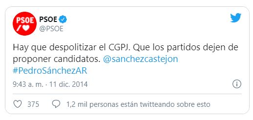 Y así con prácticamente todo. No se podía, pero ahora ya sí se puede beneficiar uno de su estatus de aforado, pese a que en el código ético del partido se abogaba por lo contrario o pese a que en su programa electoral hablaran de «eliminar los privilegios procesales». No se podía politizar la justicia, ni controlar la elección de los miembros del Consejo General del Poder Judicial, pero ahora ya sí se puede, incluso yendo un paso más allá y designando directamente al mayor número posible de miembros afines.