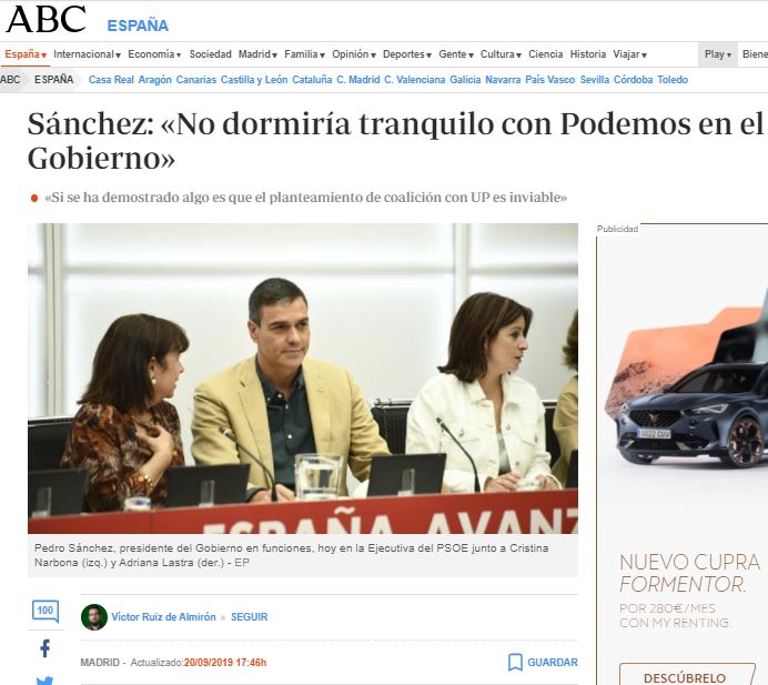 Ahora parece que sí se puede dormir tranquilo teniendo a Pablo Iglesias de vicepresidente de gobierno. Atrás quedaron esos tiempos en que Pedro Sánchez decía que no se podía formar un gobierno en coalición con los de Pablo Iglesias, porque con Unidas Podemos en el gobierno «no dormiría tranquilo por la noche. Junto con el 95% de los ciudadanos que tampoco se sentirían tranquilos». Septiembre de 2019, Sorprende la naturalidad con la que hemos visto que «sí se puede».