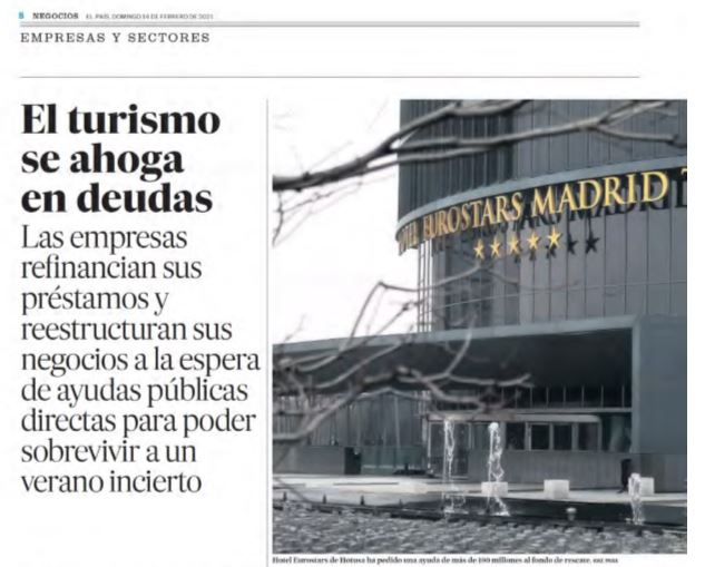 La economía española es altamente dependiente del turismo y la hostelería, sectores en los que por desgracia no se prevé una recuperación en el corto y medio plazo. El turismo se ahoga en sus deudas, como decía ayer este titular de El País.