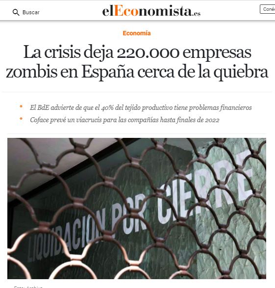 Muchas de ellas siguen cotizando en Bolsa, como Pescanova, Adolfo Domínguez, varias aerolíneas, constructoras como OHL,… Se benefician del crédito barato y casi ilimitado, de los estímulos públicos y de las preferencias de los bancos por refinanciar una y otra vez sus créditos en lugar de exigirlos y darlos por fallidos, lo que empeoraría también la situación del sector financiero. Con la paralización de la actividad motivada por el estado de alarma, el confinamiento y los cierres parciales de determinadas actividades que han sucedido durante los meses posteriores a marzo de 2020 (y llevamos casi un año), era lógico que numerosas empresas se vieran abocadas al cierre. Los estímulos públicos en forma de ERTEs y sus sucesivas prórrogas, las refinanciaciones de deuda con los avales del ICO y la moratoria concursal hasta el 14 de marzo llevan de modo inexorable a una “zombificación” de numerosas empresas.