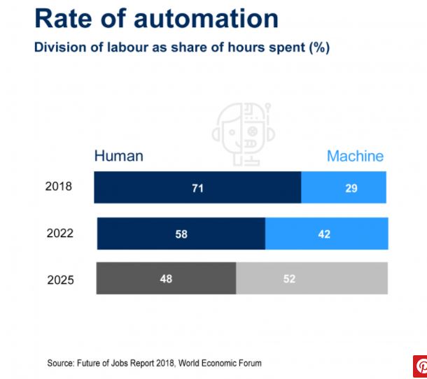 El Índice de Automatización mide el reparto del trabajo en función del número de horas empleadas, y como decía al inicio del post, se espera que en 2025 este índice supere el 50 por ciento, pero cuando se hicieron estos cálculos en 2018 no se partía de cero, sino del 29 por ciento: