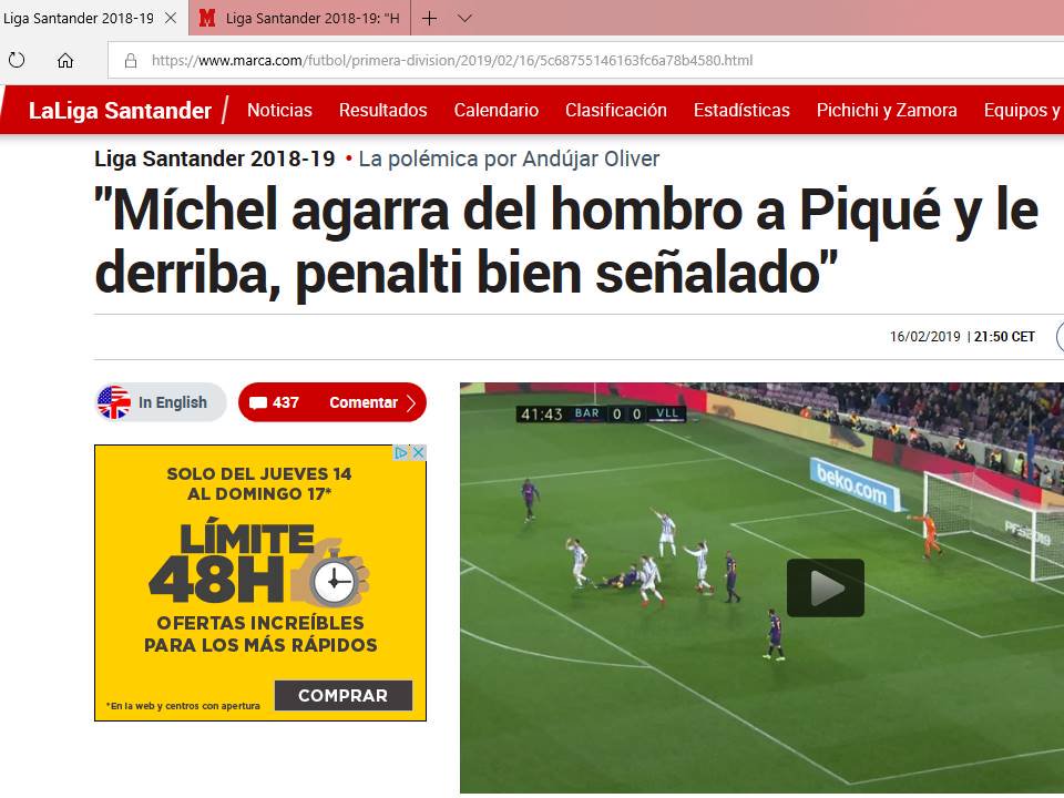 Me consta que Velasco, ingeniero industrial de formación y como tal, amante de los principios lógicos e inmutables, era el primer interesado en que hubiera coherencia y transparencia en las decisiones, y en ese sentido su gestión ha sido nefasta y los criterios ilógicos, incoherentes y para colmo, carentes de toda transparencia. Cuando intentó explicar los protocolos, errores o aciertos del VAR resultó aún más confuso y opaco. Una pena, porque no creo que fuera un mal árbitro, ni un tipo tan sectario como los que comentan en el As y el Marca: Andújar Oliver e Iturralde González.