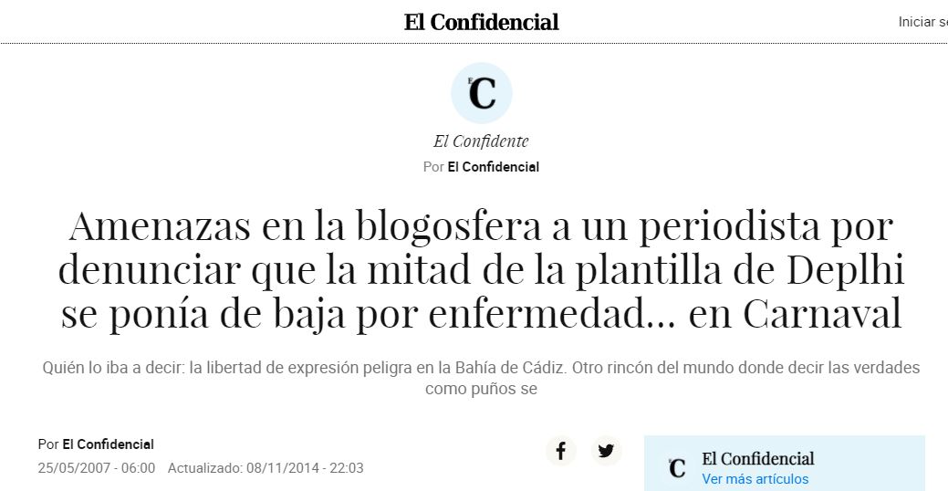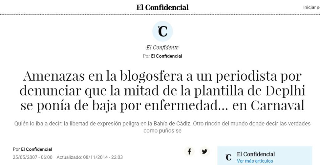 El periodista de El Diario de Cádiz Fernando Santiago describió varios de estos casos hace años en un artículo titulado Cobazos, un artículo que ha sido borrado de la web del periódico, pero que he podido encontrar. En él y en posteriores artículos, como el escrito en El País titulado Delphi dramatis personae, contaba lo ocurrido con el cierre de las fábricas de Delphi en la provincia, allá por 2007. La multinacional norteamericana tenía 30 fábricas repartidas por el mundo y las tres de Cádiz presentaban los mayores índices de absentismo, sobre el 16 por ciento. La cuarta era la de Sant Cugat del Vallés, con el 8 por ciento. «El capitalismo funciona así: hace 25 años Delphi llegó a Cádiz porque los costes salariales eran bajos. Ahora no les salen las cuentas y se llevan la producción a otro lado», decía el periodista. Sus artículos no sentaron nada bien en la provincia: