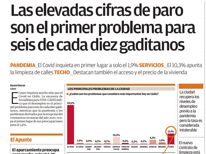 De acuerdo, pero todo eso ya pasó, quiero creer, casi todo lo contado tiene más de diez años de antigüedad, aunque es cierto que se creó una cultura nociva en parte de la población. Ahora mismo, como figura en la estadística mostrada, la cifra de absentismo es inferior a otras regiones sin esta fama, como Asturias y el País Vasco. Y el drama del paro sigue siendo la mayor preocupación de los gaditanos, muy por encima de la Covid: