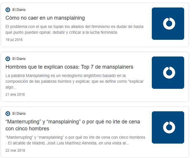 Mansplaining: el término es una mezcla de hombre (man) y dar explicaciones (explaining), algo insoportable, como podrán comprender, y que rezuma machismo por todos los poros, ya sea tu padre, un amigo que da una opinión, o tu marido, ese ser que por el hecho de haber nacido con un sexo concreto ya es machista, posesivo, dominador y un violador en potencia. El mansplaining tiene una palabra española mucho más bonita, que sí puede estar relacionado con una forma de machismo: condescendencia. La que muestran algunos hombres con las mujeres por la supuesta superioridad intelectual o moral que manifiestan o creen tener. No es casual que todos estos términos se propaguen en el diario oficial de la autoproclamada progresía.