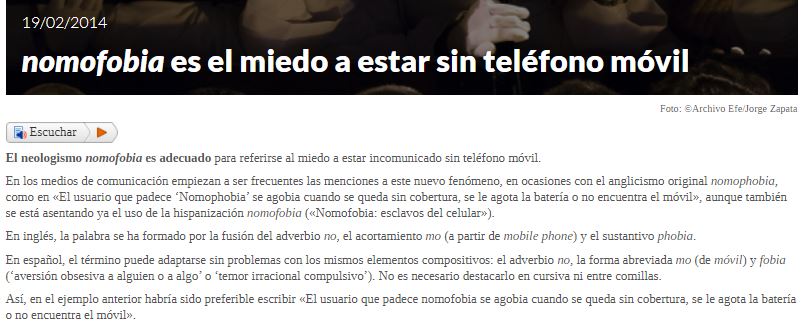 Nomofobia: es el miedo a salir de casa sin el móvil. O a quedarse sin batería o sin cobertura. O a no tener datos y buscar como un poseso una wifi disponible con desesperación, que todos lo hemos visto alguna vez en nuestros hijos. La palabra no está reconocida todavía por la RAE, pero llegará en breve. Viene del inglés nomophobia: no, mo por mobile phone y phobia, el miedo o aversión a algo. Los que tuvimos nuestro primer móvil cerca de la treintena agradecemos esos momentos ocasionales sin el móvil, esos días en los que levantas la cabeza de la puñetera pantallita y te das cuenta de la belleza que puede haber en el entorno.