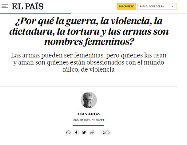 La belleza, la amabilidad, la cordura, la educación, la sensibilidad, la risa… son nombres femeninos. El caos, el hartazgo, el agobio, el suicidio, el homicidio, el estupro, el bofetón… son palabras masculinas. Pero esto sería entrar en uno de los debates más gilipollescos que se me ocurren, ¿»el mundo fálico, de violencia»???? Datacutting para ellos, que me acabo de inventar. O cortarles los datos para que no expandan su diccionario de chorrading.