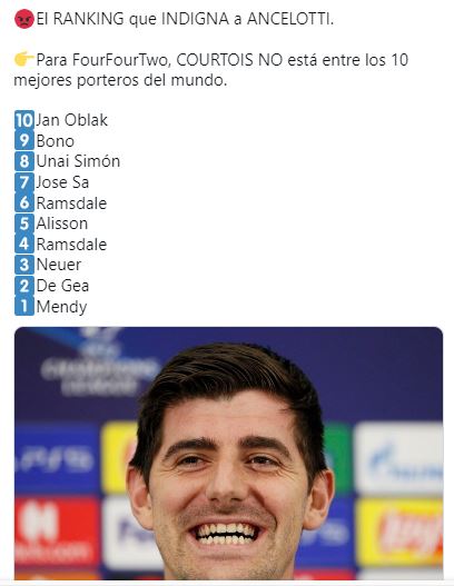 Los expertos dijeron hace un año que Courtois no estaba ni entre los diez mejores porteros del mundo. Pues bueno, si esos son los expertos, yo soy un entendido en botánica y me parece perfecto que esa gilipollez la siga creyendo el resto del mundo. Yo no recuerdo un portero igual en mi vida, y lo dije ya cuando jugaba en el Atleti.