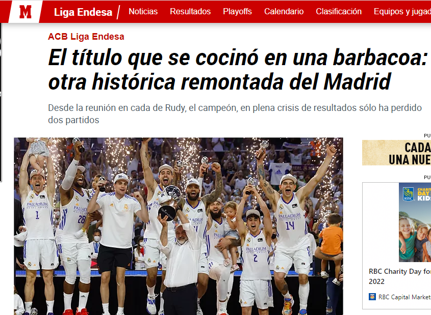 Con el triunfo en la Liga, Pablo Laso conquista su 22º título como entrenador, y lo hace a lo grande, tras derrotar con claridad a un Barça que llevaba un parcial de 11-3 con Saras Jasikevicius al frente, justo antes de la Final Four. En los cinco partidos posteriores, cuatro victorias para los de Laso y una sola para los culés, la del pasado miércoles, que contó con uno de esos arbitrajes de vergüenza en el que se vieron cosas inéditas, como que un bofetón a Causeur se saldara con triple y técnica a favor del Barça, o que se pitara personal en la jugada decisiva cuando el Madrid había capturado el rebote, no cuando teóricamente se había cometido. Vistas las imágenes varias veces y desde diferentes ángulos, no se aprecia contacto alguno. Cosas que pasan en ese «clásico» error de los últimos segundos en el Clásico del baloncesto.