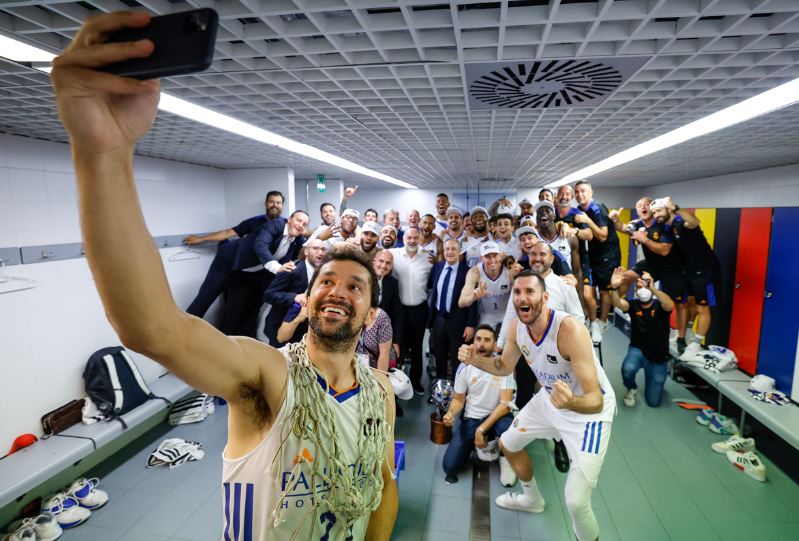 Esta es la foto que subió el Real Madrid a sus redes sociales, en la que se muestra la plantilla que ha logrado ganar la Liga y la Supercopa de España, y que perdió en los últimos segundos la Copa del Rey y la Euroliga. En los meses de febrero y marzo, cuando el equipo acumuló una racha de 15 derrotas en 20 partidos, nadie daba un duro por este final de temporada. Si observamos la foto, en ella aparecen 16 jugadores: dos fueron apartados por Laso tras la juerga de Atenas (Trey Thompkins y Thomas Heurtel) y otros tres han sufrido lesiones de gravedad que los han apartado de la final (Randolph) o de varios meses de competición (Alocén y Williams-Goss). Para colmo de males, el entrenador Pablo Laso sufrió un infarto hace tres semanas, lo que hizo que el equipo fuera dirigido durante toda la final por su segundo, Chus Mateo. Alberto Abalde apenas ha podido disputar unos minutos durante la final por una lesión y Llull jugó tocado tras perderse el primer partido.