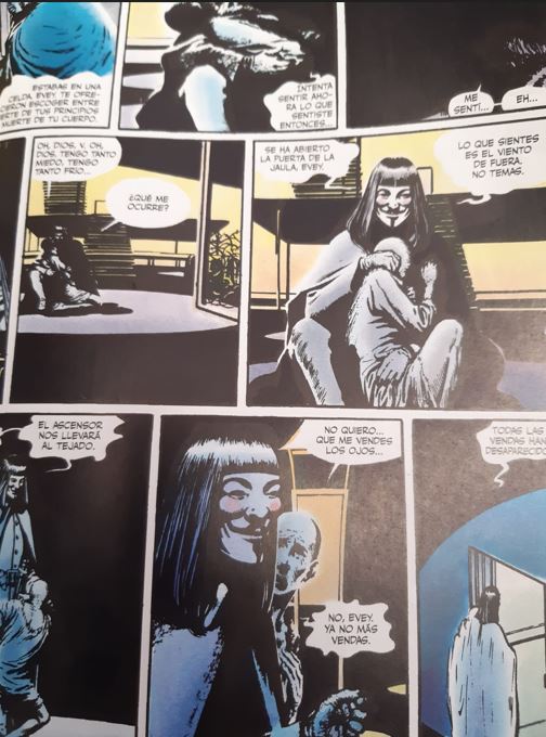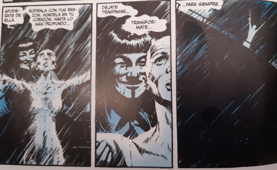 En la segunda parte hablaré de la película producida por las hermanas Wachovski cuando eran hermanos, de las diferencias notables con la novela y de los aciertos o cobardías a la hora de adaptar el cómic de Moore y Lloyd. Hasta entonces, os dejo con otro de mis momentos favoritos, del que ya hablé en Cadena perpetua por lo que me recuerda al mismo: la liberación de Evey bajo la lluvia.