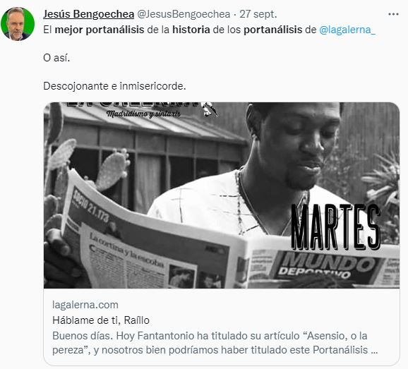 Ha habido muchos días en que se escribía «El mejor portanálisis de la historia», si es que tal cosa existe. Y muchos es muchos, de verdad. En lo que a mí respecta, ha habido en estos años pocos momentos de relajación tan placentera como la lectura de lo que los compañeros habían escrito. O como los comentarios de los lectores ante lo que yo había escrito y las carcajadas que les habían provocado mis palabras. Ahora, por desgracia, el nutrido ejército de haters ha logrado que se supriman los comentarios de la página, que albergaban igualmente un gran interés. Pero volverán, eso espero.
