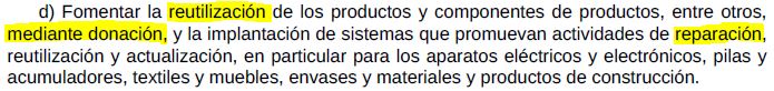 El artículo 18.1.d) no habla de otra cosa que lo que se ha hecho toda la vida hasta hace unos años: reparar las cosas. Arreglar un televisor, una nevera, un pequeño aparato casero o la ropa, en lugar de ceder a la tentación del «es más caro arreglarlo que comprar uno nuevo». Combatir la obsolescencia programada de los aparatos.