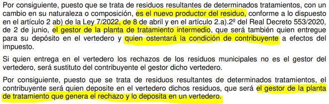 Los gestores de las plantas intermedias (empresas privadas en la mayoría de los casos) son meros intermediarios de todo el proceso, pero según la redacción, tendrán que ser quienes abonen el impuesto del depósito en vertedero. Como estas plantas se gestionan bajo contratos sujetos a la Ley de Contratos del Sector Público, con tarifas fijadas y pactadas de acuerdo a unos pliegos y ofertas, los gestores de las instalaciones tendrán que resarcirse del sobrecoste y tratar de repercutirlo a las entidades locales que han trasladado los residuos a sus instalaciones para su tratamiento. Pero el primer problema es que ese mecanismo de repercusión de costes no es automático para las empresas, pues la propia Ley limita su capacidad de actuación. Se viene una oleada de reclamaciones y contenciosos, y esta problemática daría para un post entero de carácter jurídico, pero lo dejo para los expertos en la materia.