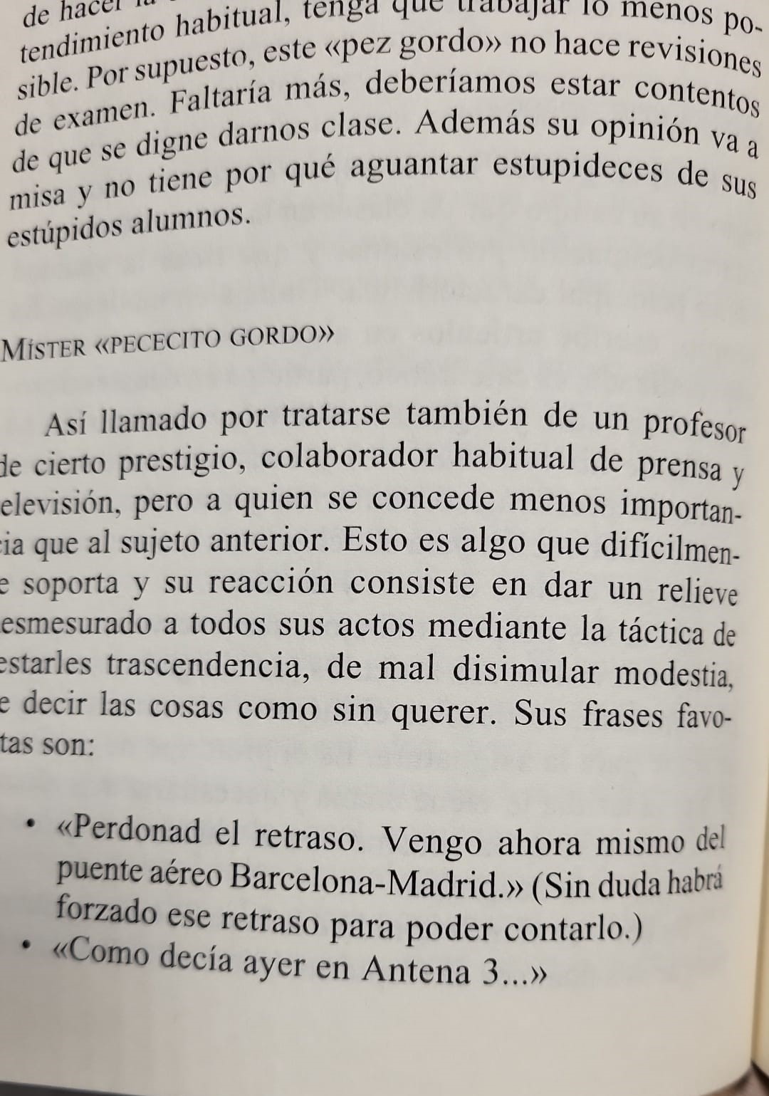 M. “Pececito gordo” se enorgullece de que su libro vaya por la vigesimosegunda edición, aunque quizás debería tener en cuenta que lleva veinticinco años utilizándolo como libro de texto.