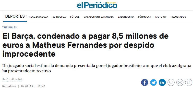 Dejamos otros temas en el tintero, como los apaños que toleró LaLiga para que el Barça pudiera inscribir a sus fichajes el pasado verano. El Barça tenía que rebajar su masa salarial para ajustarse a los parámetros económicos de LaLiga y de ahí su empeño por quitarse a jugadores con sueldos altos, como Frenkie De Jong o Piqué. El Barça había llegado a acuerdos para diferir los salarios de los futbolistas y en algunos casos, sus sueldos eran crecientes como el del neerlandés. Pero este no quiso aceptar el traspaso propuesto y el Barça tuvo que buscar otras fórmulas de dudosa legalidad. El despido sin indemnización de Mattheus le permitió quitarse de golpe una ficha, aunque no se entiende que LaLiga admitiera ese movimiento, porque apenas cuatro meses después, como era de esperar, la Justicia dio la razón al jugador. O que se rebaje de la masa salarial la cesión de Umtiti al Lecce cuando la ficha sigue corriendo íntegramente por cuenta del Barça.