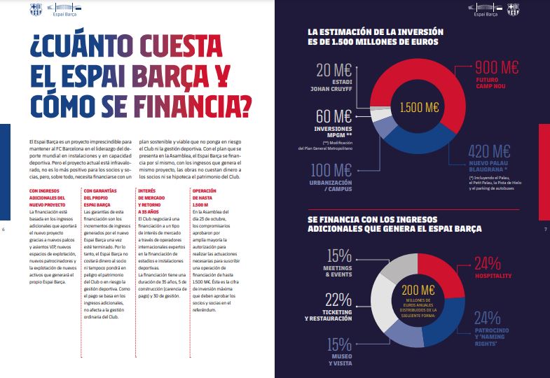 El 23 de octubre de 2021 la Asamblea de socios del Fútbol Club Barcelona aprobó un importe máximo de financiación de 1.500 millones de euros para el Espai Barça, una ambiciosa modernización de las instalaciones deportivas del club. El Camp Nou tiene problemas visibles de seguridad para los espectadores en algunos graderíos superiores, aparte de los vídeos que han circulado sobre la existencia de ratas, el mal estado de los asientos o las cagadas de las palomas cerca del área de restauración. Un estadio indigno para un club que ganó cuatro Champions en este siglo. Por su lado, el Palau Blaugrana se encuentra en un estado tan calamitoso que el club es multado por la Euroliga en cada partido que se juega allí.