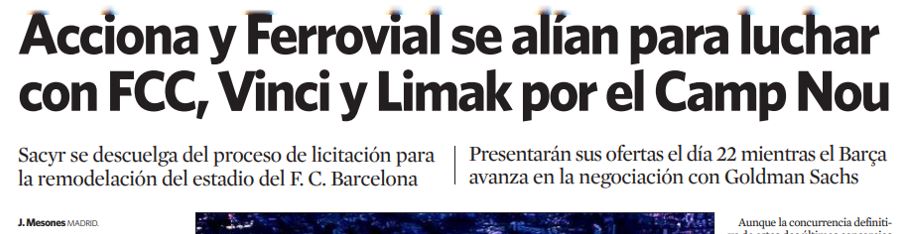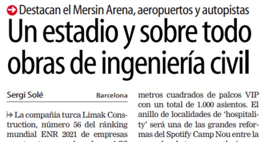 Desde hace años nada en el Barça parece ajustado a los cánones, o nada resulta previsible. Las obras no fueron adjudicadas a FCC (encargada de la reforma del Bernabéu y en el pasado, del Metropolitano y el Allianz Arena de Múnich), ni a Ferrovial (reforma del Camp Nou en 1997, estadios de Anoeta y Los Cármenes), ni a Acciona (nuevo San Mamés), ni a Vinci (estadio de Saint Denis), empresas contrastadas en instalaciones de este tipo, sino que se han firmado finalmente con la constructora turca Limak, cuya máxima experiencia en la construcción de estadios es el Mersin Arena, en Turquía, con capacidad para 25.000 espectadores.