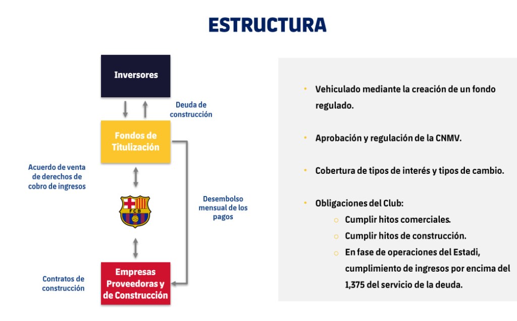 Respecto a las otras dos palancas, bastante extrañas, me espero a la publicación de las próximas cuentas del club para ver si ese dinero procedente de la venta del 49 por ciento de Barça Studios realmente entró en la caja del club (sigo pensando que fue un maquillaje contable realizado en colaboración con Roures). Con esta situación, y con el riesgo de que el escándalo «Barça-Negreira-gate» suponga varias sanciones que agraven el casi seguro colapso financiero del club, como un descenso a Segunda (no lo veremos, seguro) o una expulsión de la Champions durante varias temporadas (no le queda otra a la UEFA, pero son tan corruptos que sospecho que lo cambiarán por una renuncia expresa a la Superliga), parecía complicado que el Barça pudiera acometer la reforma del estadio y cerrar la financiación. Pero lo ha hecho, lo cual no deja de ser un éxito para sus gestores. Si bien, habrá que ver a qué precio. Las firmas que han alcanzado el acuerdo están entre lo más selecto del mundo financiero y legal: Goldman Sachs, JP Morgan, DLA Piper, Pérez Llorca, Legends, Key Capital Partners,…