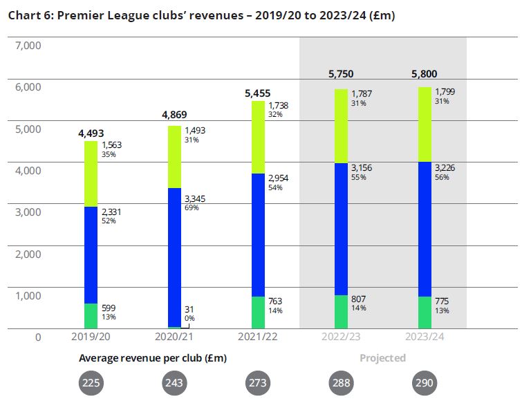 El siguiente apartado del informe trata sobre la sostenibilidad financiera de los clubes ingleses, que está en duda, y realiza una comparación con la situación en otros países. El informe habla de la necesidad de implantar fuertes medidas de control para gestionar uno de los principales activos exportadores de Inglaterra (literalmente, “one of the country’s greatest exports”), y en esa línea el gobierno inglés ha aprobado la creación de una autoridad independiente para controlar las finanzas del mundo del fútbol, la IREF (Independent Regulator for English Football). En este punto soy muy escéptico cuando Deloitte se refiere a los propietarios de los clubes y a la preocupación mostrada por la sostenibilidad de los mismos con sus propios ingresos. Abu Dábi, Catar, Arabia Saudí, en su día Abramóvich… no veo mucha preocupación por seguir inflando los patrocinios.